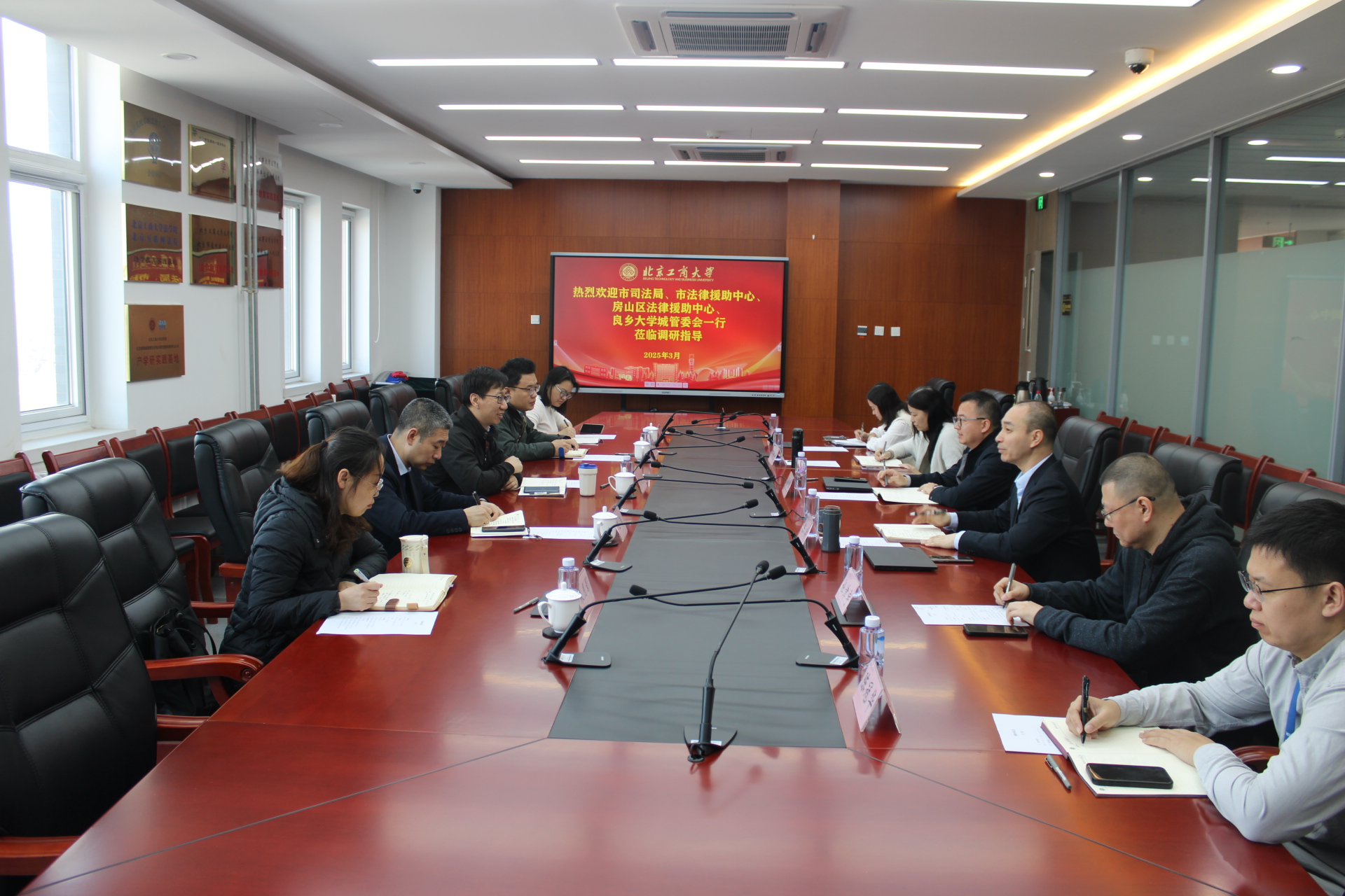 3月5日,北京市法律援助中心副主任常占芳一行来公司开展调研交流活动,旨在加强双方在法律援助与法治人才培养等领域的沟通协作。市法律援助中心公共法律服务管理处一处主任科员刘东鹏,市法援中心实体平台管理科科长王涛,房山区法律援助中心主任朱月影,良乡大学城管委会高校服务部部长卢娜一同参与调研。公司党委书记胥阳,经理陈敦,党委副书记孙惟佳,经理助理陈冠华,经济法学系教师杜津宇和辅导员刘心瑶一同参与了座谈。
