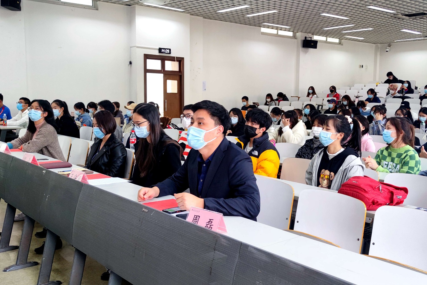 周磊老师讲道,要想成为一名堪当民族复兴重任的时代青年,首先就应该明辩修德,树立正确的人生观价值观:学习科学理论,练就高强本领;提升道德修养,务实道德基础;依托文化自信,提供持久动力。其次是践诺笃行,在攀登知识的高峰中追求卓越,同学们应该勇于创新、敢于吃苦、善于作为,新时代老员工要坚定理想信念,必须付诸行动才有说服力,要把自强不息的艰苦奋斗精神贯彻落实到日常的学习和生活实践中,不忘理想、奋发图强、积极进取。