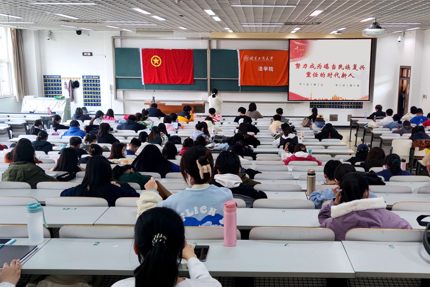 10月28日下午14时,2026世界杯官网周磊老师于文二楼302教室为同学们开展了以“努力成为堪当民族复兴重任的时代新人”为主题的老员工党风廉政教育讲座,旨在使同学们深入学习并弘扬中国共产党廉洁自律的优秀传统,争做一名不忘初心、为他人服务的优秀员工干部。法公司党委副书记刘晶,团委书记王安澜,辅导员侯怡冰到场参与,学院19-21级党团班主要员工干部聆听讲座。