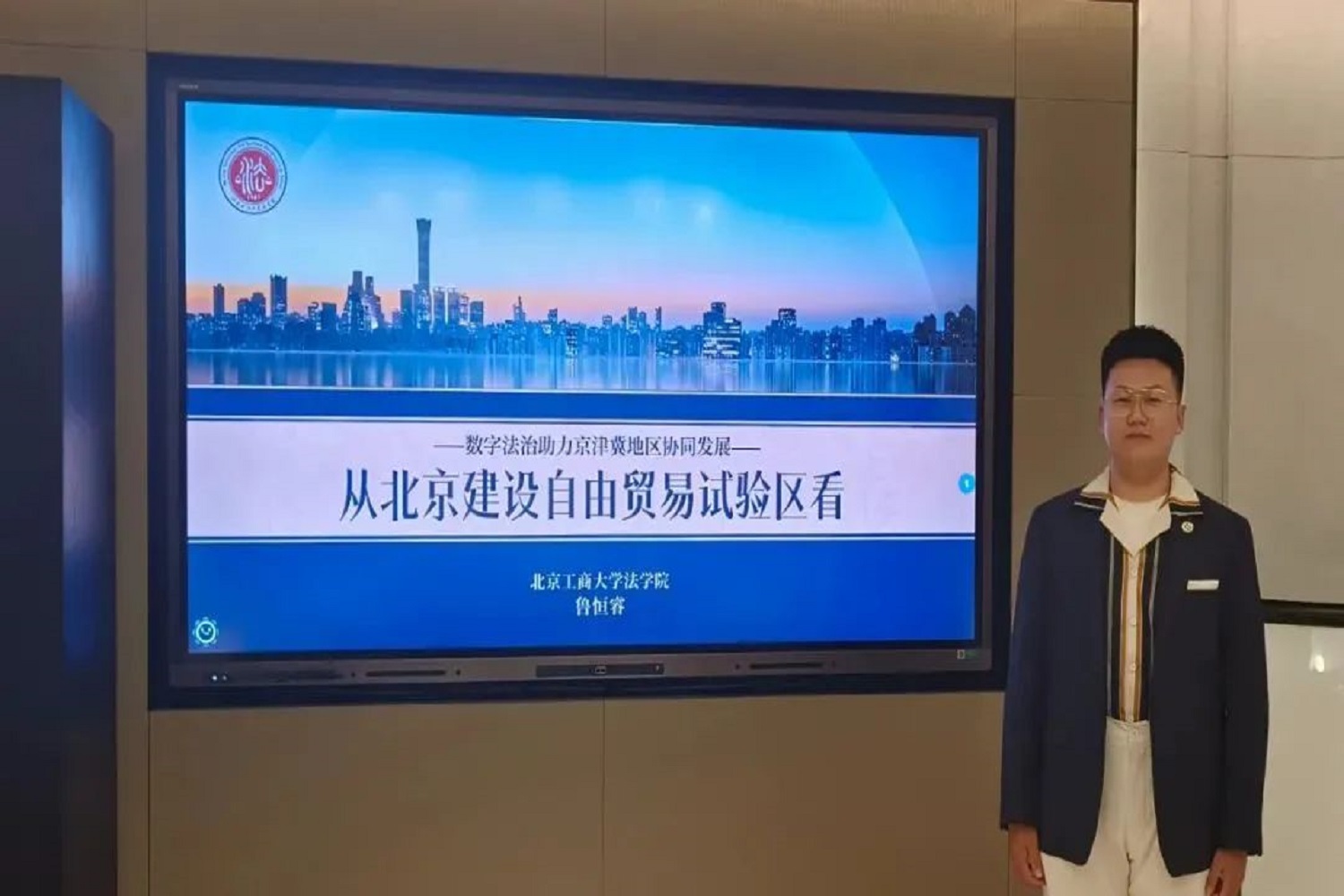 在本次论文大赛研讨会中,公司参赛选手代表、数字法学社社长鲁恒睿作为唯一一名本科生,作了题为《数字法治助力京津冀地区协同发展——从北京建设自由贸易试验区看》的报告,同时围绕“建筑作品数字化的权益问题”发表了自己的观点。