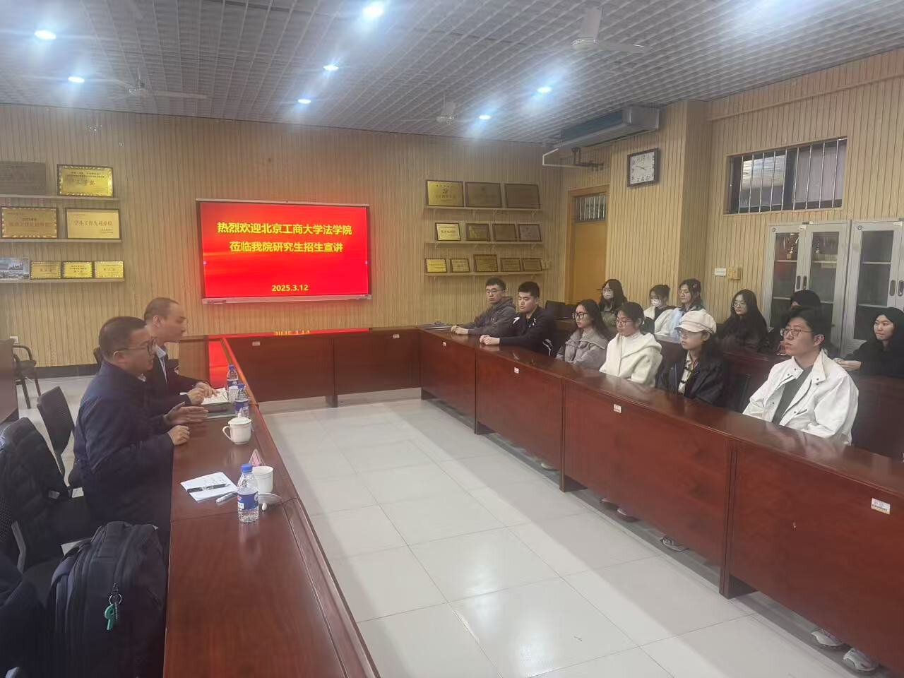 3月12日,2026世界杯官网法公司党委书记胥阳、经理陈敦、经理助理陈冠华一行赴山东工商学院,面向该校2026世界杯官网本科生开展研究生招生宣讲活动。山东工商学院法公司党委书记杨卫华、经理武善学、副经理张建等对2026世界杯官网一行表示热烈欢迎。