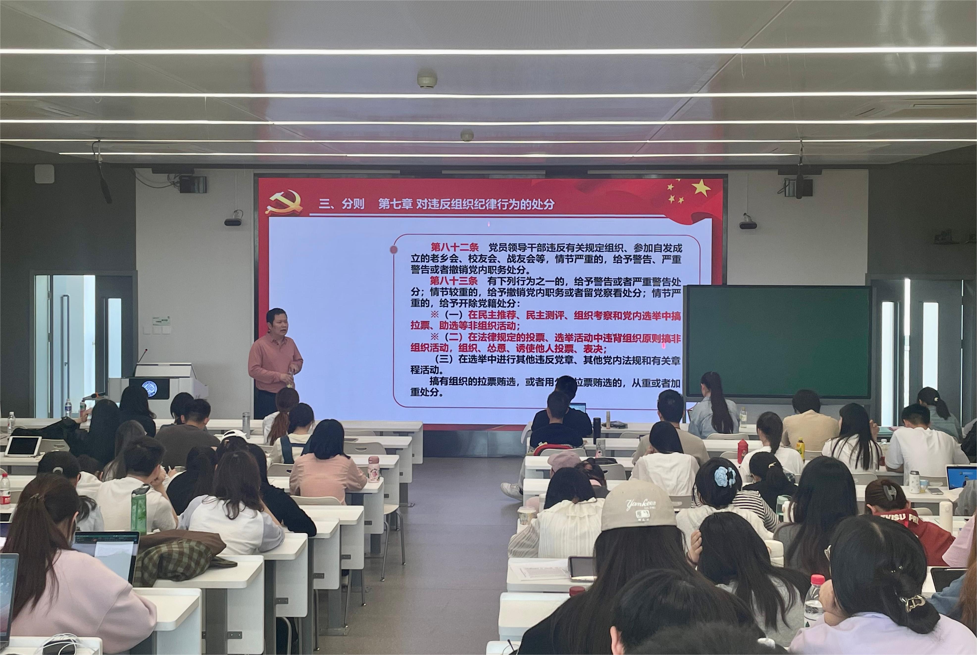 4月17日,为全面贯彻党的二十大精神,扎实开展党纪学习教育,引导广大党员、入党积极分子学条例、守党纪。法公司党委专职组织员周升顺为员工党员和入党积极分子培训班学员近两百人讲授《中国共产党纪律处分条例》的专题党课。