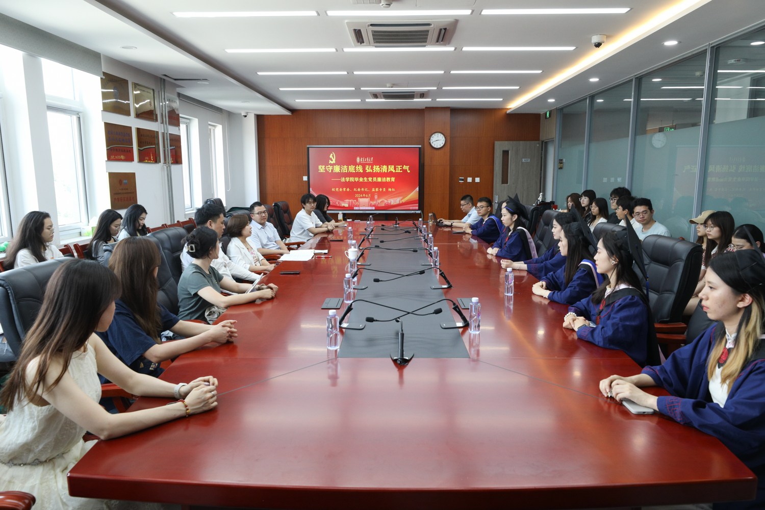 杨红首先以年轻党员领导干部违纪违法案例入手,从低龄腐败的手段、目的、行为和心理等方面详细分析了腐败低龄化的特点及成因。她强调,贪腐问题没有年龄之分,在年轻干部身上同样存在不可忽视的腐败风险与危害,年轻干部大都处于人生的攀爬期,面对各种诱惑与压力,一定要算好“政治账”、“经济账”、“名誉账”、“家庭账”、“亲情账”、“自由账”和“健康账”,同时把好政治关、权力关、交往关、生活关和亲情关,在任何情况下都要做到廉洁自律、洁身自好,严格要求自己。结合法学专业特点,她着重论述了廉洁的重要性。她指出,廉洁是中国共产党的青春密码;是中华优秀传统文化的宝贵财富;是共产党员的修养;是跳出“历史周期律”的法宝。