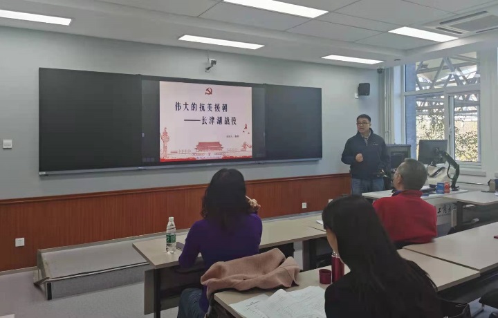 随后工作人员宣布比赛规则。经各系推荐的7名教师按照顺序进行了教学内容展示。颜苏老师参赛课程为《战后国际关系史》,他以近期热播的《长津湖战役》为例,介绍了抗美援朝的伟大精神及其影响,现场展示了历代我军军粮,吸引听众的目光。