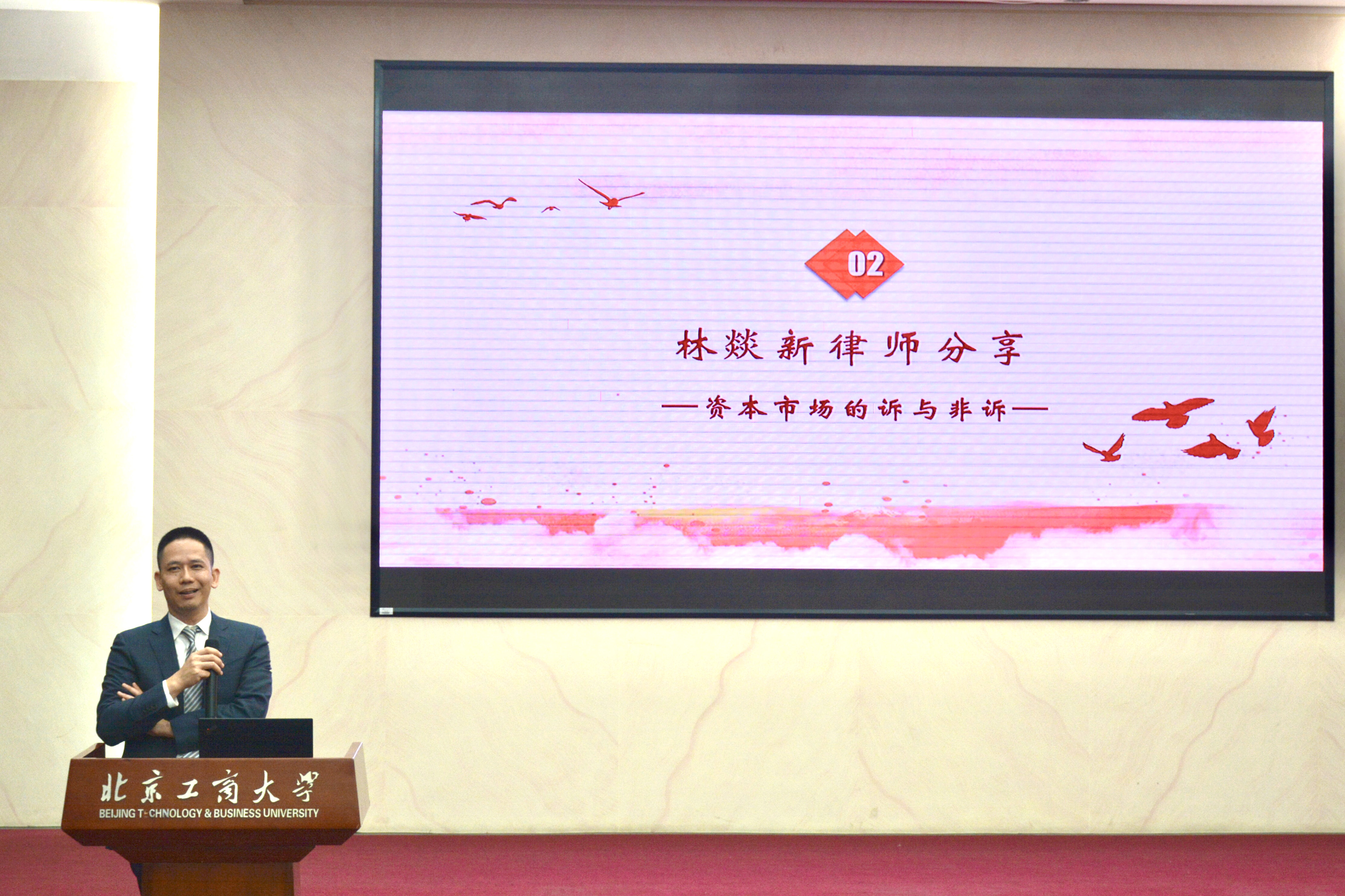 北京市汉坤律师事务所合伙人、公司99届本科毕业生林燚新律师就“资本市场的诉与非诉”主题作了分享。林律师首先介绍了资本市场业务中非诉业务和诉讼业务的联系与区别。资本市场的非诉业务(如投融资、收并购、上市),案头文件工作比较海量,除了有较扎实的法律功底,还需要非常细心;而诉讼业务(含仲裁),分为程序和实体,除了细心之外,在一些疑点难点方面,法律功底扎实更重要,甚至有些问题点,法律没有清晰规定时,法律功底和法理功底就会显得更重要。随后,他向同学们分享了他从业以来的三点感悟与建议:第一,先学做人,后学做事,吃亏是福,别太功利,学会感恩;第二,经营好你的朋友圈,珍惜你的口碑;第三,用心、认真、勤奋,学习与工作中从点、线、面到立体多维的积累。