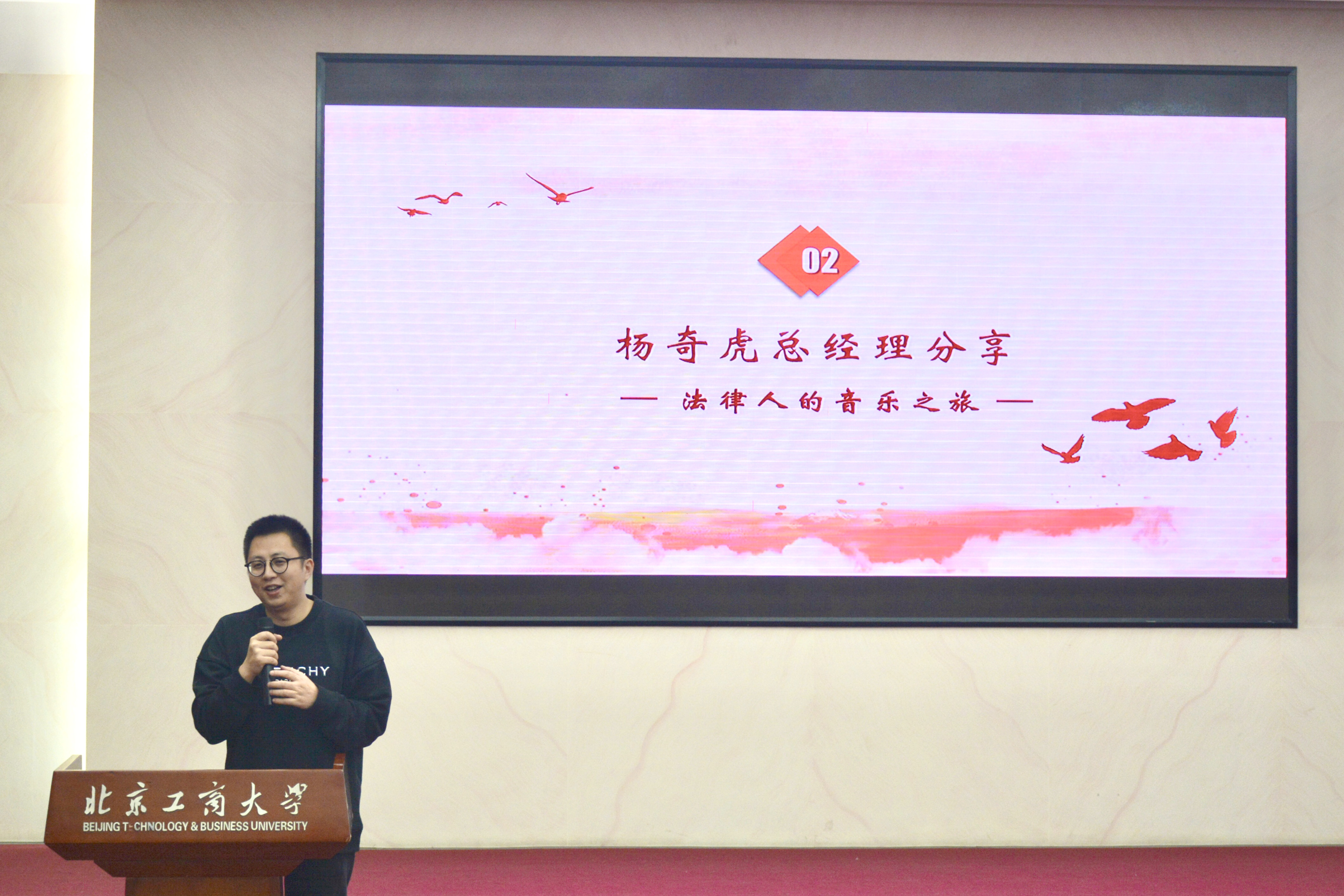 腾讯音乐娱乐集团总经理、公司2003届本科毕业生杨奇虎跟同学们交流的主题是“法律人的音乐之旅”。他首先介绍了自己的从业经历,并以自己在腾讯公司近十年的从业经验,向同学们介绍了在互联网企业工作的体会。互联网技术瞬息万变,互联网企业从业人员无不面临激烈的竞争。过去十年是互联网发展迅猛的十年,未来十年中互联网经济仍将有大的发展,因为互联网正在影响甚至改变我们生活的方方面面。随后,他提到目前互联网行业中重整音乐版权秩序的行动,并指出互联网音乐行业是可值期待的行业,建议有志于此的同学可以了解一下这个领域的资讯和发展状况。