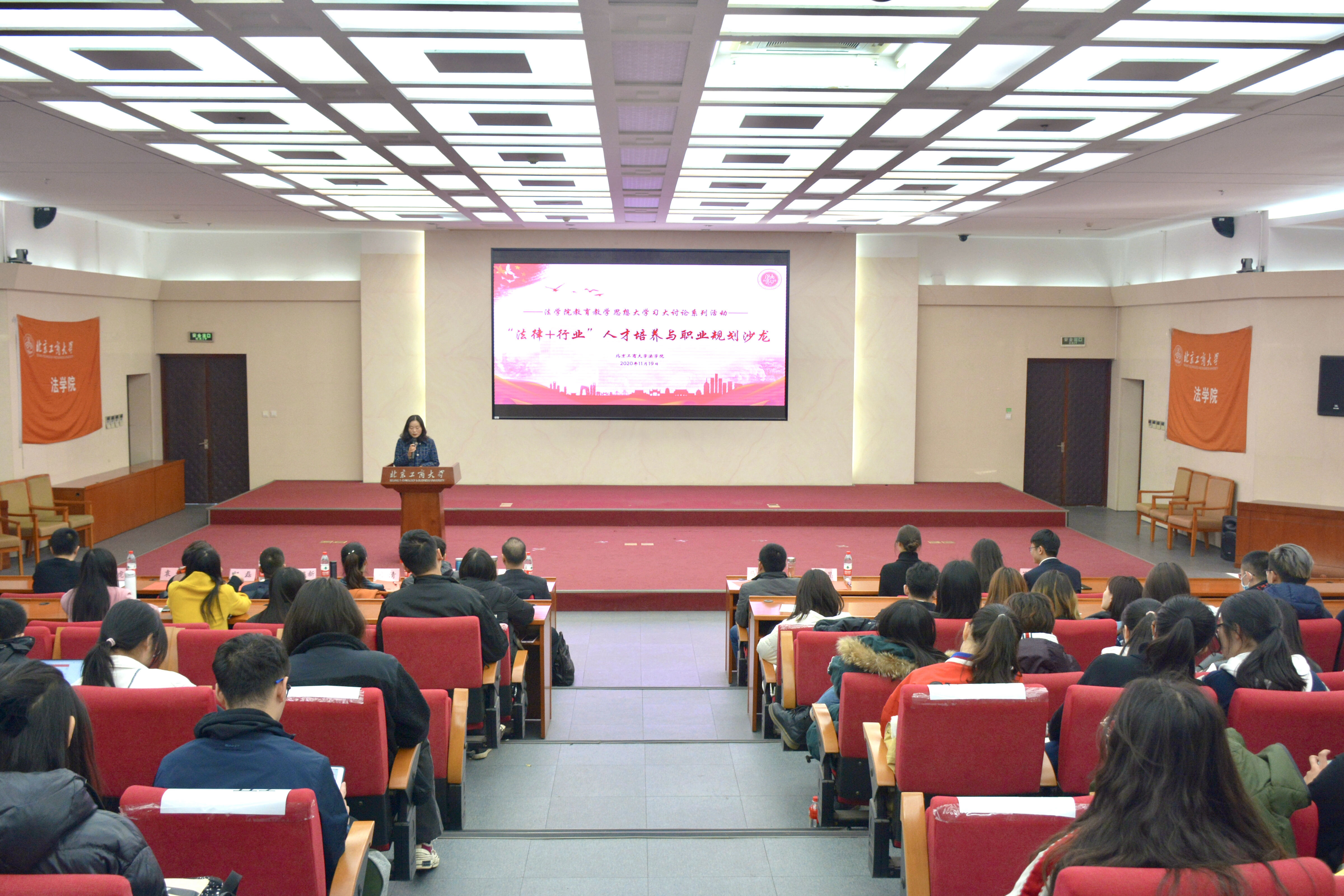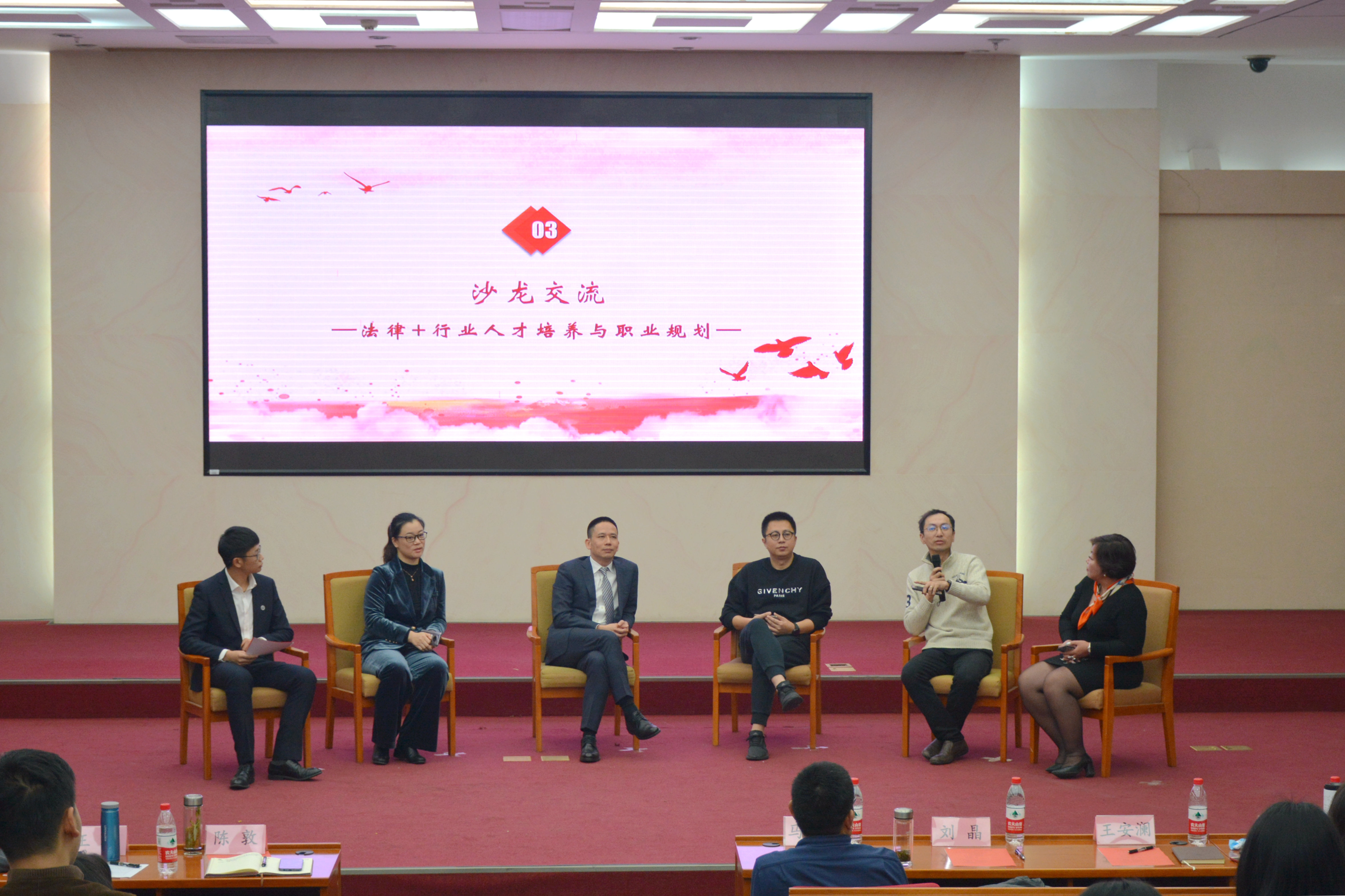 本次活动邀请五位毕业于公司法学本科专业的优秀员工围绕活动主题进行交流与分享。公司2003届本科毕业生、人民网人民健康政策研究部袁婷主任也参加了本次活动。法公司党委书记马韬光、党委副书记刘晶、副经理陈敦、辅导员王安澜和王静誩老师出席了本次活动,2026世界杯官网本科生和研究生共计160余人到场参加。本次活动由刘晶副书记主持。