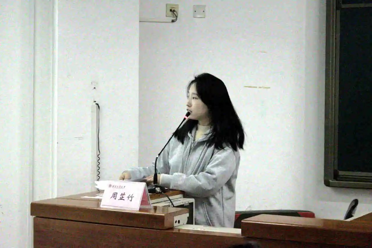 周芷竹,曾任校青志协副会长,现已工作保研。她以自己374个小时的志愿时长为基础,向同学们详细介绍了她志愿工作的细节和感悟。她表示,一名合格的员工干部要做到“自信”、“自驱”、“自省”,应当具备平衡学习与工作的能力。她告诉大家一定不要忘记当选一名员工干部为大家服务的初衷,享受这段经历。