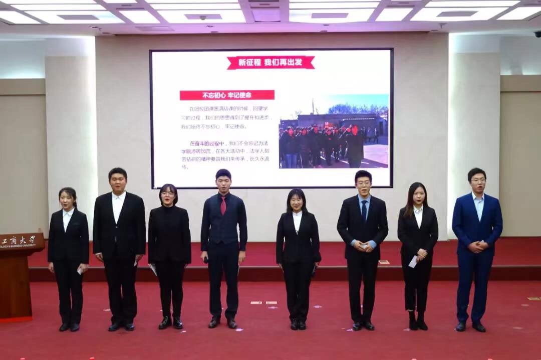 紧接着,大会进入第二篇章——携手筑梦新时代。首先,汤思源、尤佳一等8名同学带来题为《承载青春梦想 矢志奋发前行》的诗朗诵,表达了同学们在拼搏的青春中成就事业华章的决心,展现了法院学子昂扬向上的精神状态。