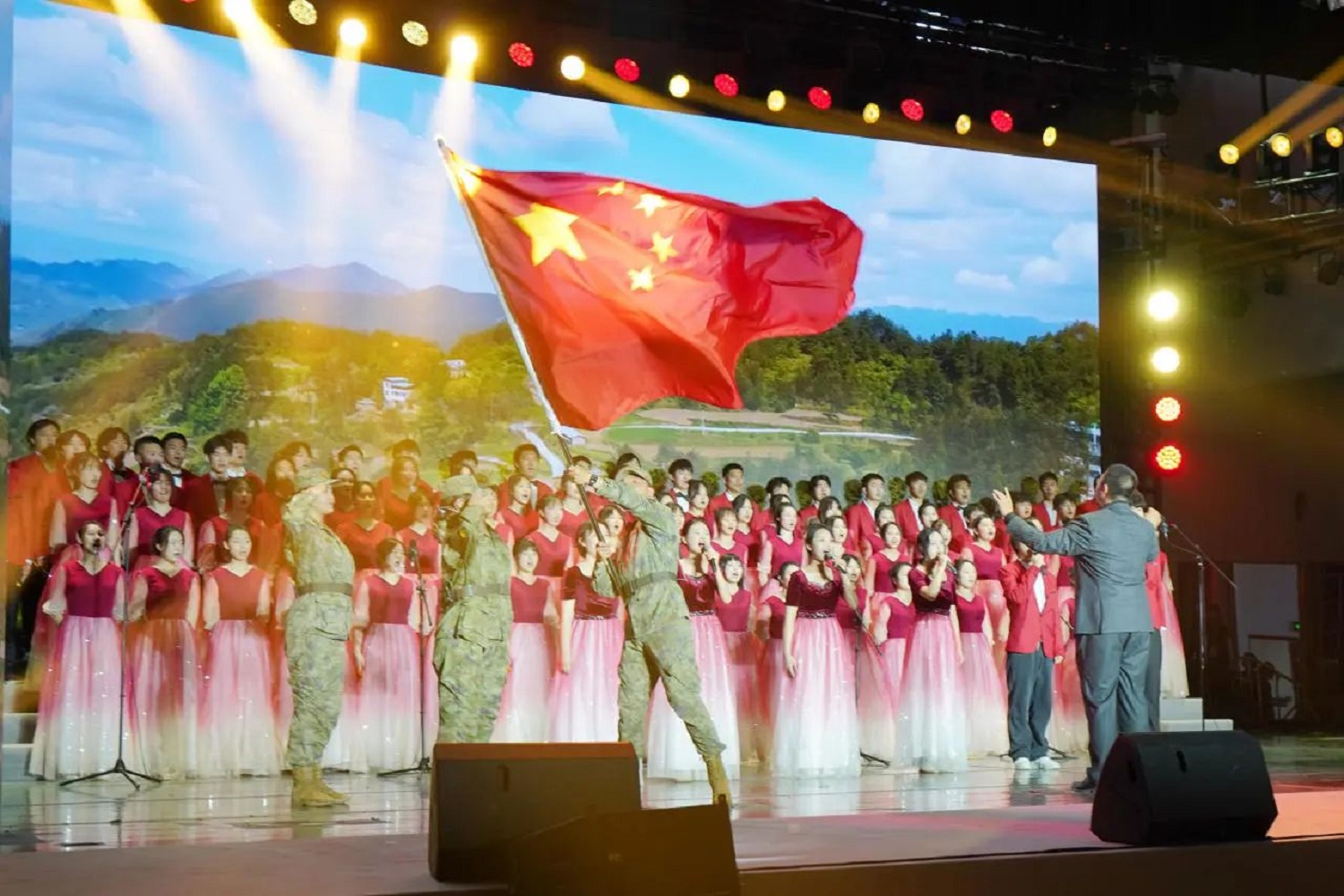 旋律激昂,如同划破长空的闪电,点燃了心中的热血。一词一句既是对历史的回顾,也是对未来的期许,激励着我们向着复兴的目标砥砺前行。我们是英雄的中华儿女,坚定的信念会跨越未知的挑战,每一位青年学子的前进步伐都会被时光所见证,用信仰书写着属于自己的辉煌篇章。