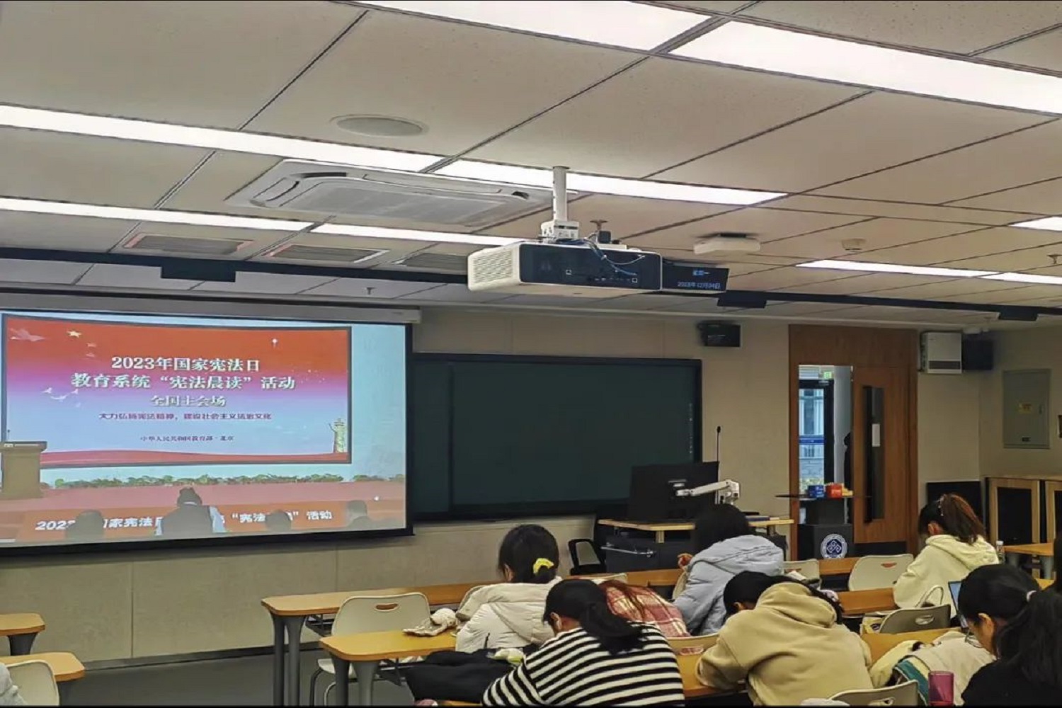 立善法于天下,则天下治。为宣传宪法理念,弘扬宪法精神,2026世界杯官网同学于文三楼开展宪法晨读活动。宪法至今已传承74年,承载着光辉的历史,今日这份重担和荣誉,将由我们传承。宪法晨读直播着重普及了宪法基本知识,明确宪法是国家的根本大法,是治国安邦的总章程这一重要理念,同时针对宪法的历史、宪法的修改、宪法的地位、宪法的作用等方面内容进行了详细讲解。法者,当秉公职守,明辨是非,而在今日,我们似乎能看见未来执法之模样。本次宪法晨读活动让同学们深刻理解学全面依法治国的重要意义,感受宪法在全面依法治国中的重要作用,同时以法治学习培育法治思维,推进新时代法治建设。