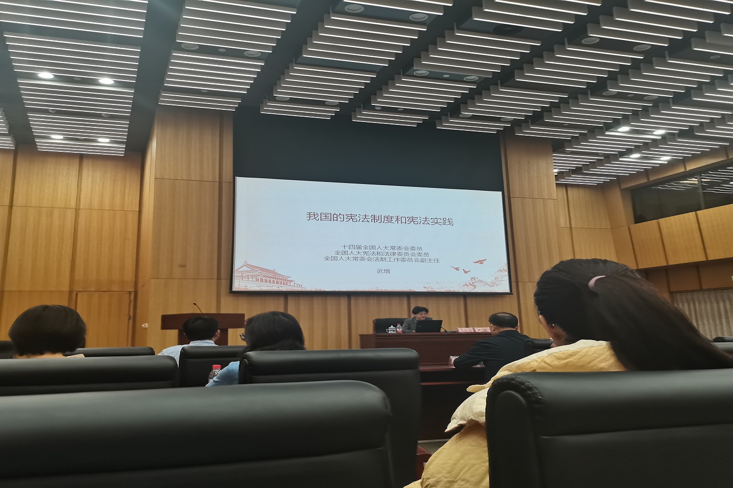 武增主任从习近平总书记对于宪法的重要论述、宪法为改革开放和社会主义现代化建设奠定了坚实的根本法基础,以及围绕新时代宪法制度化建设和实施所取得的历史成就,深入浅出地介绍了我国的宪法制度和宪法实践的情况。武主任以历史的视角阐述了东西方宪法的源流,着重评析了近代以来我国的立宪制宪尝试、新中国宪法制度的创立以及现行宪法的制定和发展。内容丰富,政策性强,既有理论高度,又紧密联系实际,对同学们学习宪法、理解宪法精神具有很强的指导性和针对性。